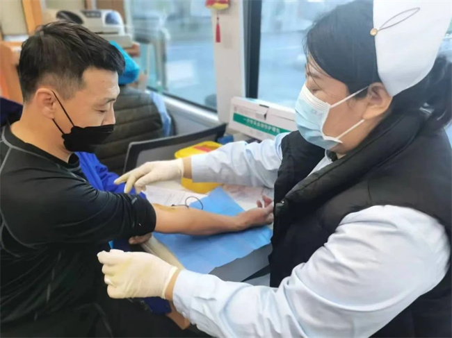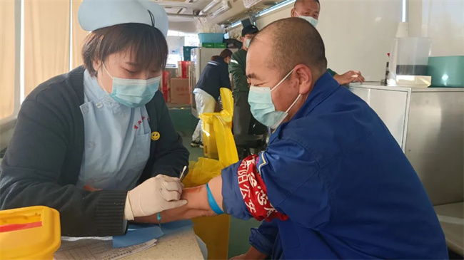 活動中,參加獻血的職工認真填寫獻血登記表,積極配合醫(yī)務(wù)人員進行血壓測量、抽血化驗等程序,血液檢驗合格后正式進入采血步驟。